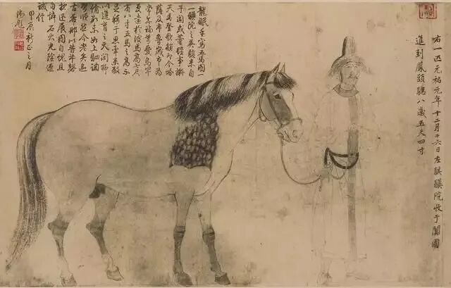 澄心堂紙不僅用于書法,也用于繪畫。據記載北宋畫家李公麟作畫不喜歡設色,多用白描,用的也是澄心堂紙。根據明代大收藏家項元汴考證,李公麟的傳世名作《五馬圖》用的就是澄心堂紙。