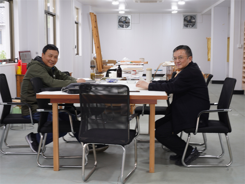 2021.4.14 中國(guó)科技大學(xué)人文與社會(huì)科學(xué)學(xué)院院長(zhǎng)湯書(shū)昆來(lái)公司指導(dǎo)楮紙古法制作技藝。